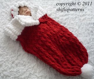 202 - Pom pom Edged Papoose Knitting Patterns 3 sizes
