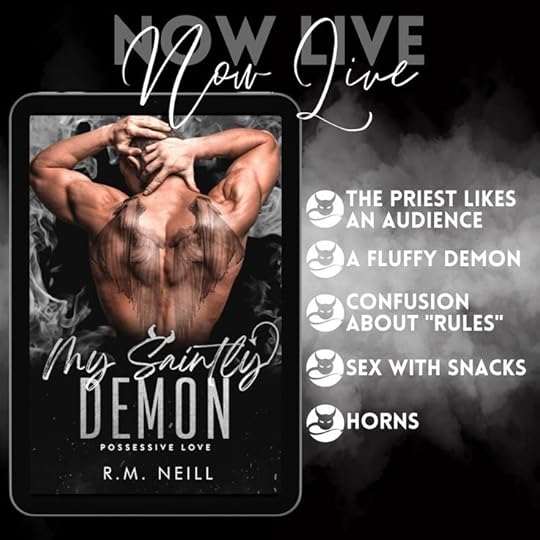 MY SAINTLY DEMON by R.M. Neill, part of the Possessive Love series, is Charles and Dave's mm, paranormal, religious, possessive mc, forbidden, priest/demon story told in the dual first-person point of view and ends with a happily ever after.
