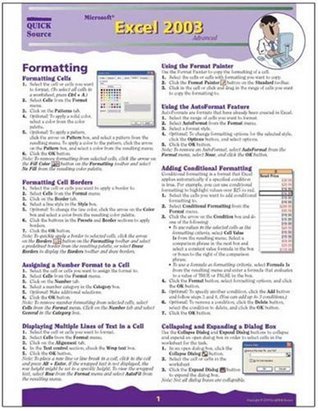 Do you need an easy-to-follow software reference right at your fingertips? Our 6 page, tri-fold guides are the answer. These quick reference guides include step by step instructions to help users to learn software features more quickly, as well as full color screen graphics to highlight important features. Quick Source reference guides also include the software program s NEW features and gives you quick access to time saving shortcuts. The Microsoft Excel 2003 Advanced Quick Source guide is a clear and concise tool for learning the advanced features in Excel 2003. Features contained in this guide include Formatting Cells, Creating an Array Formula, Importing Data, Sorting Data, Using Solver, Using Goal Seek, Creating a PivotTable or PivotChart Report, Using the Chart Toolbar, Previewing a Worksheet, Sharing a Workbook, Protecting a Worksheet, and much more.