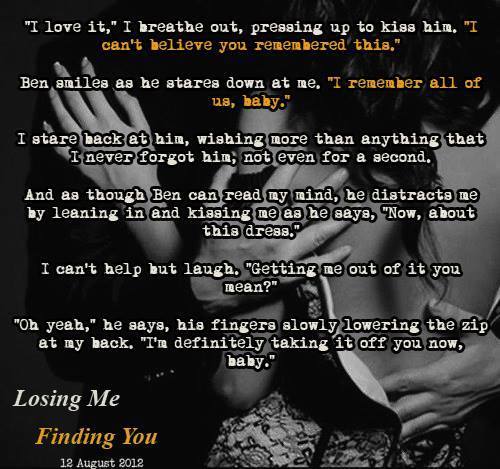 “Back to you,” I say quietly. “You’re not just the first thing I remember. You’re always the last thing I remember too, Ben, and you’re always the one thing I’m trying to find again, even if I don’t realise it straightaway.”