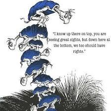 ’Yertle the Turtle was a king. He was the king over all he saw, but he was dissatisfied. He wanted a bigger kingdom, so he decided he needed a higher throne. From the higher throne, he would be able to see farther, and rule over more territory. To satisfy his need for a higher throne, he ordered a few turtles to be stacked upon each other. From atop this throne of turtles, he could expand his kingdom. Over the course of increasing his reign an insignificant turtle on the bottom of the throne named Mack asked for some relief. He was granted none. Higher and higher the turtles were stacked, and yet Yertle was never satisfied. Eyeing his vast empire, he noted he wasn’t the highest creature in the sky. Perturbed by the presence of the moon, he ordered a thousand more turtles for his throne. All the while poor Mack on the bottom of the stack was aching with a sore back. Finally, Mack cracked. Actually, he burped. And the tower of turtles came toppling down. Yertle fell into a puddle of mud, where he reigned over all that he could see, which wasn’t very far.’…from the internet site of The Fat Pastor….