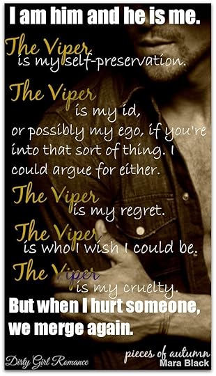 And then we're introduced to Tate, and the second dose of confusion came, this time followed by frustration. I did not get Tate and Autumn relationship or feelings at all. In fact, the more I read, the more questions I had and the more I wanted to tear at my own hair. But I wasn't the only one confused. Tate and Autumn were more confused than me. One second Tate was this bad person, The Viper, and who thrived on pain and wanted to hurt Autumn and the next he was bandaging her and babying her. I mean yeah, I get that he didn't want to be The Viper and that the whole reason he pretty much isolated himself was so not to hurt anyone, but he seemed pretty nice to me and in control of 'Viper'. And then there is Autumn. Even though she had not been forced to give herself to Stoker, and that she was running away from a bigger danger, she felt like she had the ground to be picky and to try and run away from both Stoker and Tate when she had gone to them for protection in the first place, knowing, or maybe suspecting that they were not what they said they were. The part that really got to me though, was that she tried to run away because Tate was nice to her. Yep, you heard right. She nearly got herself killed because she didn't want nice Tate when just a few chapters earlier she was complaining about The Viper.