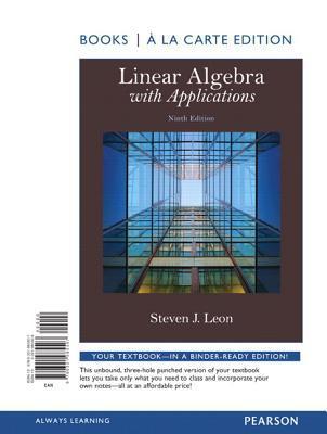 This edition features the same content as the traditional text in a convenient, three-hole-punched, loose-leaf version. Books a la Carte also offer a great value-this format costs significantly less than a new textbook. Before you purchase, check with your instructor or review your course syllabus to ensure that you select the correct ISBN. Several versions of Pearson's MyLab & Mastering products exist for each title, including customized versions for individual schools, and registrations are not transferable. In addition, you may need a CourseID, provided by your instructor, to register for and use Pearson's MyLab & Mastering products. This book is for sophomore-level or junior/senior-level first courses in linear algebra and assumes calculus as a prerequisite. This thorough and accessible text, from one of the leading figures in the use of technology in linear algebra, gives students a challenging and broad understanding of the subject. The author infuses key concepts with their modern practical applications to offer students examples of how mathematics is used in the real world. Each chapter contains integrated worked examples and chapter tests. The book stresses the important roles geometry and visualization play in understanding linear algebra.