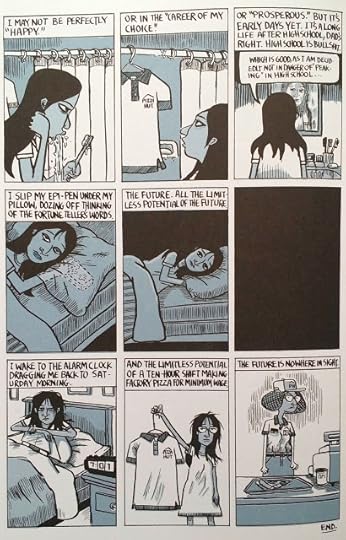 I almost feel like I should give this 5 stars just because I was able to make it through an entire graphic novel. I'm trying to get better at reading graphic novels, and this was wonderful practice. I liked that it was a collection of short stories, and I though the art was easy to follow. I didn't love every story ("Johnny Pinetop" and "Big Boned" were pretty weak to me), but there's something about the way Ollman shared bits of these characters' lives that felt quite poignant. My favorites were "Giant Strawberry Funland," "Hanging Over," and "They Filmed a Movie Here Once." This is an uncomfortable and sad and funny collection, and I recommend.