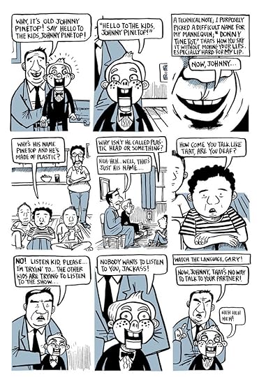 I would say the earlier stories, while technically a little rougher and less complex, are actually better than the two that are drawn and lettered in a way reflecting his artistic and narrative "growth". The earlier stories have more heart and are edgier and sadder, which may put off some people, but they are really, really good stories that will stay with me, stories of a hapless ventriloquist; a guy who is pressured by his macho coworkers to go deer hunting and kills a deer he doesn't know what to do with; a "plus size" waitress and her restaurant menagerie; a man who drinks himself to oblivion while he fails to adequately care for his ailing mother and mentally disabled brother; a bookseller who is in a conflict with a rival bookseller. . . Oh, I know, they all just sound too sad, but they are all so skillfully drawn and told! There's humor and warmth underneath it all!