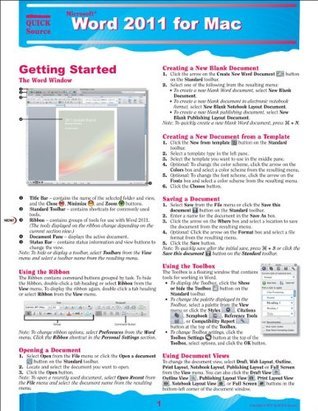 The Word 2011 for Mac Quick Source guide is a clear and concise tool for learning the features in Word 2011 for Mac. Features contained in this guide include features such Using the Ribbon NEW!, Creating a New Blank Document, Inserting a Watermark, Using the Format Painter, Inserting A Symbol or Special Character, Applying a Text Style, Converting Text to a Table, and much, much more! If you want a Quick Source Guide, but do not see the title you want, visit us at quicksourceguides.com.