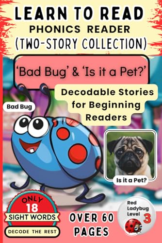📚 A Book for Every Beginning Red Ladybug Levels 🐞 Over 60 pages of fun and engaging decodable content, featuring two "Bad Bug" (a fiction story) and "Is it a Pet?" (a nonfiction exploration).