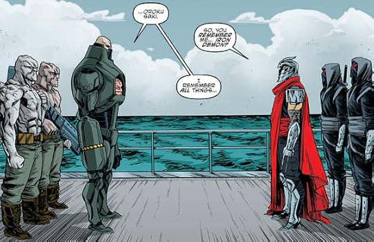 A lot happens but there's not much through-line with any of it, which at this point is fine. The threads, I'm sure, will connect. I would prefer less Hun (a snooze) and more Old Hob (always fun). Metalhead shows up. We meet the Rat King. Slash continues to grow. The Turtles and Splinter have a lot of discussion about which villain to tackle first, Krang or Shredder. However, after a fateful meeting between the two villains that calls to mind the partnership of Hitler and Mussolini, we can assume that in future volumes our heroes may need to face both at once.