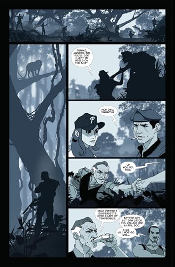 This was a really enjoyable read. Story follows a ragtag crew of mercenaries onboard a stolen Japanese submarine, as they make their way around the South Seas, looking for treasure and taking on a variety of jobs to keep themselves in diesel fuel and supplies. The artwork is very interesting--lots of shadows and layered compositions. The characters look like they stepped out of Jonny Quest or something. In fact, much of the time, reading this book is like looking at animation stills. This is one of the few collections I've read that probably looks better on an iPad than it did in its original form. The colors are bright and really pop. I also enjoyed the story a lot, too. Set in 1938, before World War II really got going, in an environment where Japan and China are skirmishing, this is just the right mix of Indiana Jones-type adventure and war story. The primary arc follows the crew as they agree to pick-up a spy with vital intelligence about the Japanese war machine, from an area near the Hong Kong shore. There are also hints at a larger, ongoing treasure hunt, for a group of French treasure ships that went off course, before supposedly finding a "lost" island and never being heard from again. I'd actually like to know more about this aspect of the story and hopefully this will developed in future volumes. Highly recommended, this is a nice change from superheroes and space battles.