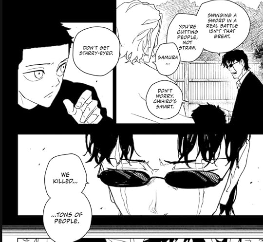 OH MY GODS samura is so fucking cool😮💨 and the Makizumi are cool too!! i love that we are seeming older men from the past war effort fight (😏) i can’t get over how fucking fast the guy is like bro it comes through so clearly in the pages.