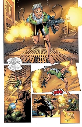 and a real waste of Marvel Boy! this is a fascinating character who would later go on to accomplish many key things in the Marvel universe. just check out his bizarre powers: enhanced insect DNA which makes him triple-jointed amongst other things; his spit contains nanotechnology that creates hallucinations and allows mind control; he can consume anything - cardboard, trash, whatever - to regain his strength; he can re-route his neurological impulses (being tortured? who cares! let's just turn that physical pain into the sound of a beautiful symphony!); he can go into a "White Run" which allows him to push anything not related to fight or flight from his mind. power-wise he's an embarrassment of riches. the story he is surrounded by is just plain embarrassing.