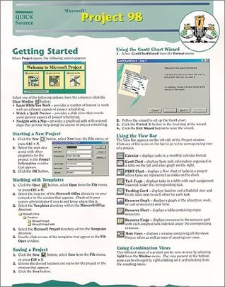 This 6 page, tri-fold full-color guide is an invaluable resource for anyone who uses Project 98. It provides step by step instructions on how work with templates; work in different views; use the task table; track, reschedule, link and split tasks; define resources; use the calendar; format; edit reports; print; and much more! An excellent instructional tool for a user new to Project 98, it also serves as a handy reference tool for the more experienced user.