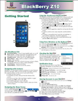 Do you need an easy-to-follow software reference right at your fingertips? Our 6 page, tri-fold guides are the answer. These quick reference guides include step by step instructions to help users to learn software features more quickly, as well as full color screen graphics to highlight important features. Quick Source reference guides also include the software program s NEW features and gives you quick access to time saving shortcuts. The BlackBerry Z10 Quick Source guide is a clear and concise tool for learning the features in Blackberry Z10. This guide include tips and instructions on many topics, including Using the Touchscreen Keyboard, Checking the Hub, and Syncing Accounts to your Hub. It also includes Using Voice Dialing, Sending a BBM, Adding an App, Using Time Shift, and Encrypting your Data!