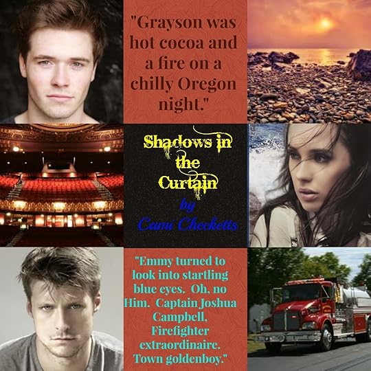 Every stage actress wants fans, but what happens when one goes too far?Emmy has the perfect life— a house on the beach, a successful career headlining the local theater, and love. But when a brutal murder brings unimaginable grief, Emmy’s world comes crashing down. As she tries to pick up the pieces, she can’t seem to avoid Josh, the new fireman in town. Emmy does her best to fight the sizzle in her chest when Josh is near. But with the stalker still out there, terrorizing her and those she cares about, she can’t fall for anyone—especially Josh, a suspect in the murder investigation. If Emmy allows a man to get close, it’s not just her heart she puts at risk, it’s her life.“Cami Checketts can spin a tale like no other. Love, suspense, thrills, she has it all, and Shadows in the Curtain is no exception. What a thrill ride! I highly recommend this book. 10 stars!!”Sherry Gammon, author of the Port Fare Series