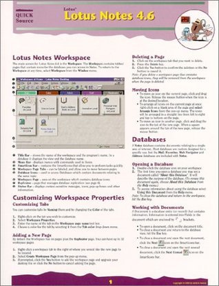 This 6 page, tri-fold full-color guide is an invaluable resource for anyone who uses Lotus Notes! It provides step by step instructions on how to customize the workspace, open a database, create new folders, work with public and personal address books, create mailing lists, send and receive messages, make calendar entries, schedule meetings, assign tasks, create a local replica of a database, and much more. An excellent instructional tool for a user new to Notes, it also serves as a handy reference tool for the more experienced user.
