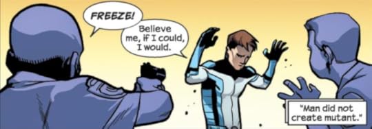 Also, Bendis is always better with a Spider-Man involved. I think writing in Miles Morales must've really perked him up, because the plot as a whole felt more lighthearted and joyfully written. Sure, the mutants are all facing potential death or permanent loss of their homes, but they're still witty and funny in the face of that. It's not heavy and plodding as previous volumes have been.
