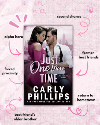 Book Review: Just One More Time by Carly Phillips Rating: ★★★★★ Carly Phillips finally brings us Aiden and Brooke’s long-awaited story, and it did not disappoint. Just One More Time (Book 6 in the Sterling Family Series) is a great addition to the series, but you will enjoy their story as a standalone as well. However, you will find yourself hooked and diving into the rest of the series to know their stories. The chemistry between Aiden and Brooke is sizzling. Their witty banter, angst, and undeniable attraction make this one of those “just one more chapter” reads you can’t put down. Aiden and Brooke have a history; one they kept hidden from their family so no one would feel uncomfortable. But when Aiden chose an exciting job and left town, Brooke had to move forward on her own. Now five years later, Aiden is returning home and finds himself working closely alongside Brooke. They are successful, single, and sparks are flying! Aiden knows what he wants and is determined to win her back. Will Brooke be able to forgive and forget? Will the danger that Aiden left behind find its way into his family life and threaten his future? Will Aiden and Brooke get their happy ever after along with the rest of the Sterling Family? Just One More Time is a steamy read with a great story filled with family, love, and second chances. Reading their stories is as if you are joining their next family dinner or celebration. If this is your first Carly Phillips read, I’m sure you will be hooked and reaching for more of her great work!