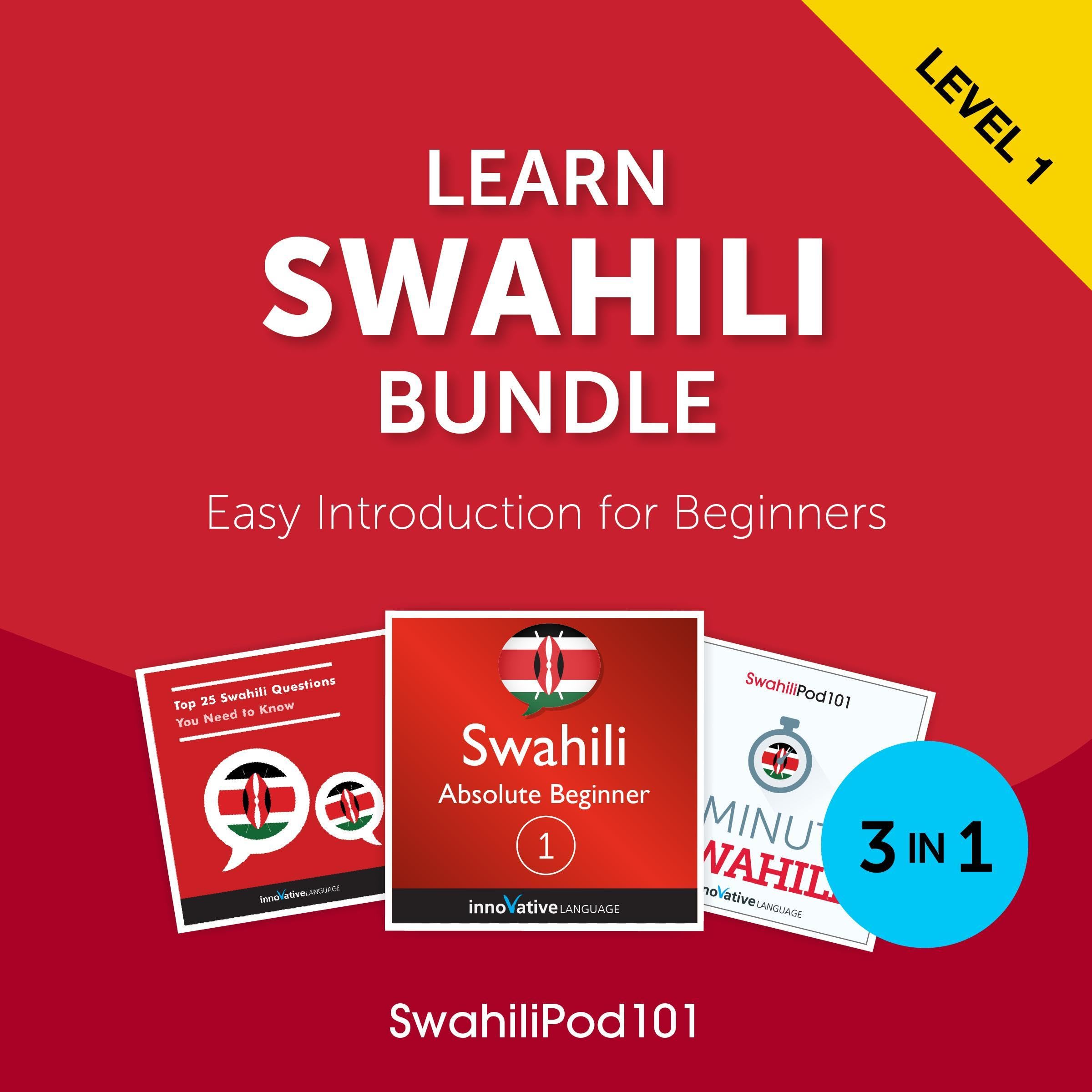 - Contains 3 SwahiliPod101 Audiobooks (Absolute Beginner Season 1, 3-Minute Swahili, and Top 25 Swahili Questions You Need to Know)