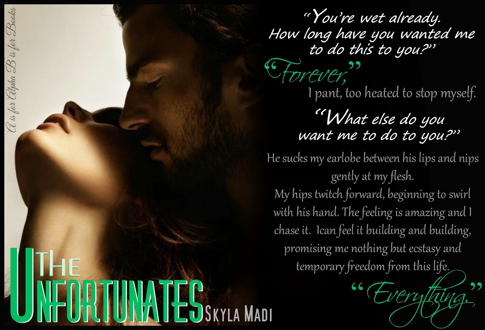 There are a few authors out there who could tell me they're writing a new novel about the joys of shit-scrubbing and I'd gear up to read it. Fortunately none of the authors I love tend to write about shit-scrubbing, so that doesn't come up much. Either way, Skyla Madi is one of them. There was a sneak-peak of The Unfortunates at the end of Forever Consumed and I was hooked right away.Kade Sario was supposed to vicious and cruel. He was supposed to be a monster, to hurt and chastise me for the smallest things... but he didn't. I didn't understand it... until I found out what he really wanted from me.