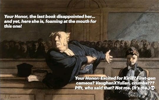 Vaughn got a certain serpent man pinned to a tree, choking him out with a chain and this dude Yulian’s just giggling like it’s foreplay?? "Love it when you get rough, Mishka"—SIR??
