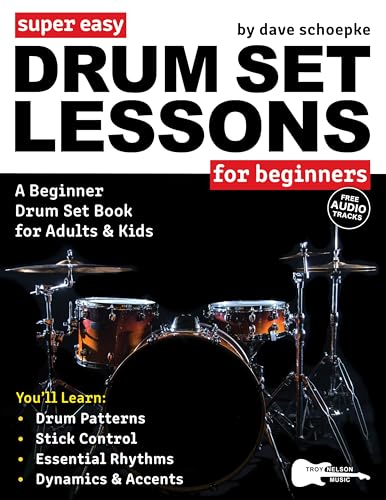 Learning to play drums has never been easier! Super Easy Drum Set Lessons for Beginners takes a progressive approach to drum set education. Each of the book's lessons builds on the previous lesson by using basic drum patterns and simple note combinations to reinforce the material.This book progresses in stages to allow you time to focus not only on what you are playing, but how you are playing it. By keeping the exercises from getting too difficult, you’ll be able to build on your playing in a very gradual and balanced way. The goal of this book is to get you started on your path to achieving four-way coordination on the drum set and to help you understand some of the fundamentals of music, including dynamics, accents, and repeated figures.