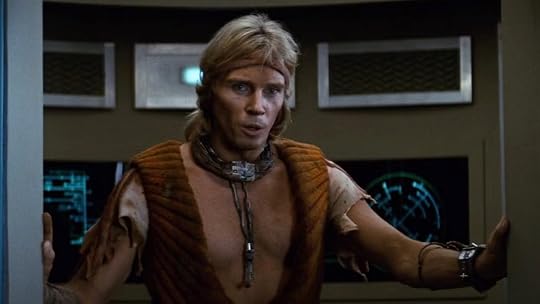 It was not all that easy. Before it was over, one of the supermen was dead, and almost everyone else on both sides was considerably banged up. At last, however, the survivors from the Botany Bay were locked in a hold, and Kirk and his officers reassembled in the briefing room.The plot follows the scenes from the episode, but they're altered, so it was kind of like reading a different story. The characters are a little different, and there's more philosophy. The discussion between Spock and Khan at the formal dinner went on a lot longer and in a different direction, though it's one I liked. I'm looking forward to checking out the short storyization of some of my other favorite episodes to see what else is changed.