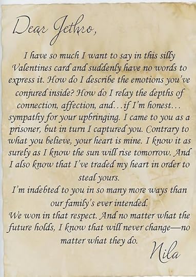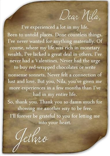 "You should know you’re it for me, Nila. There’s no turning back from this. I’m on your side until the end." Jethro