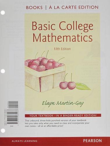 This edition features the same content as the traditional text in a convenient, three-hole-punched, loose-leaf version. Books a la Carte also offer a great value-this format costs significantly less than a new textbook. Before you purchase, check with your instructor or review your course syllabus to ensure that you select the correct ISBN. Several versions of Pearson's MyLab & Mastering products exist for each title, including customized versions for individual schools, and registrations are not transferable. In addition, you may need a CourseID, provided by your instructor, to register for and use Pearson's MyLab & Mastering products. Elayn Martin-Gay's developmental math program is motivated by her firm belief that every student can succeed. Martin-Gay's focus on the student shapes her clear, accessible writing, inspires her constant pedagogical innovations, and contributes to the popularity and effectiveness of her video resources. This revision of Martin-Gay's worktext series continues her focus on students and what they need to be successful.