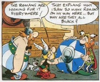 The defeat of the Gauls by the Romans is a sore point - perhaps the darkest expression of psychology in Asterix - and raises the issue of how human inability to acknowledge defeat can actually wipe knowledge from History.