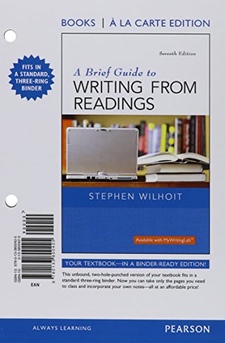 NOTE: This edition features the same content as the traditional text in a convenient, three-hole-punched, loose-leaf version. Books a la Carte also offer a great value; this format costs significantly less than a new textbook. Before purchasing, check with your instructor or review your course syllabus to ensure that you select the correct ISBN. Several versions of Pearson's MyLab & Mastering products exist for each title, including customized versions for individual schools, and registrations are not transferable. In addition, you may need a CourseID, provided by your instructor, to register for and use Pearson's MyLab & Mastering products. NOTE: You are purchasing a standalone product; MyWritingLab does not come packaged with this content. If you would like to purchase both the physical text and MyWritingLab, search for: 0134173171 / 9780134173177 A Brief Guide to Writing from Readings, Books a la Carte Edition Plus MyWritingLab with Pearson eText - Access Card Package, 7/e Package consists of: