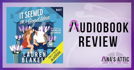 It Seemed Like a Good Idea by Lauren Blakely Narrated in duet by Erin Mallon and J.F. Harding RomCom. Stands Alone. First in the Darling Springs Series. 4.25 Stars Thank you to Lauren Blakely and her team for an early review copy. This post contains affiliate links.
