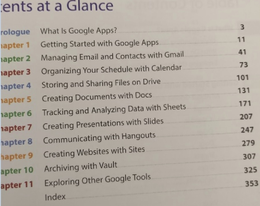 This is a beautiful set of easy-to-follow instructions to deal with the most common issues found when working with the most popular Google apps, such as gmail, calendar, hangouts and the like. The feature I liked the most is the beauty of the box. This book makes a great piece of decoration next to your computer station in a well-put and nice home.