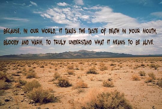 Because, in our world it takes the taste of death in your mouth, bloody and warm, to truly understand what it means to be alive.
