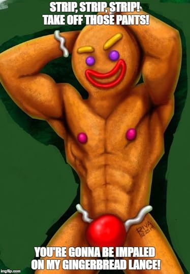 Her gingerbread man had plumped a bit as he cooked, and his arms and legs were as thick as a real man’s. The penis she’d grafted onto his body had swollen as well. The pornographic confection stood enormous and erect, its tip almost touching the oven’s ceiling. Somehow, she’d gotten the shape of it just right, from the swell of its head to the slightly curved shaft. When she thought about what Allison might say when she saw it, Kara blushed. She hadn’t mean to make it that big.