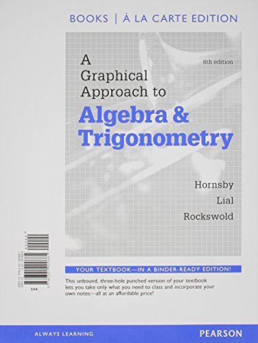 0134862163 / 9780134862163 A Graphical Approach to Algebra & Trigonometry, Books a la Carte Edition Plus MyLab Math with Pearson eText -- Access Card Package, 7/e Package consists of: 0134674383 / 9780134674384 A Graphical Approach to Algebra & Trigonometry, Books a la Carte Edition 0134859111 / 9780134859118 MyLab Math with Pearson eText - Standalone Access Card - for A Graphical Approach to Algebra & Trigonometry