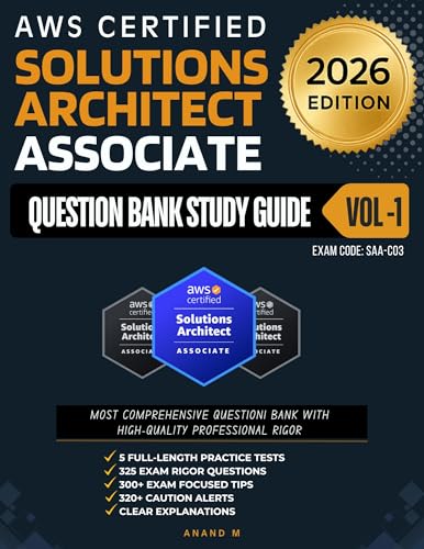 Equip yourself with the ultimate study AWS CERTIFIED SOLUTIONS ARCHITECT – ASSOCIATE (Exam SAA-C03): QUESTION BANK STUDY GUIDE WITH LATEST EDITION – 5 FULL-LENGTH PRACTICE TESTS, 325 EXAM RIGOR QUESTIONS, 300+ EXAM-FOCUSED TIPS, 320+ CAUTION ALERTS, AND CONCISE EXPLANATIONS.