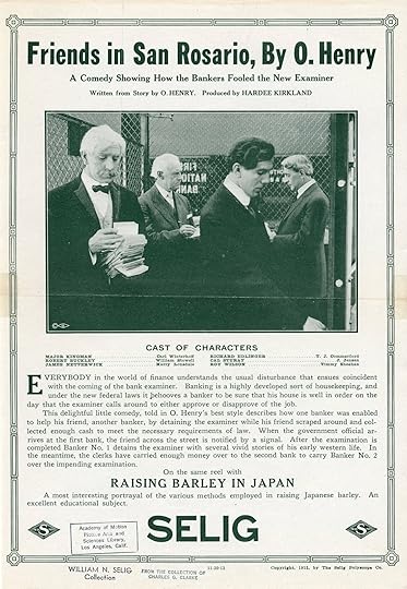 O. Henry's "Friends in San Rosario" is a short story about a Western bank and an unfriendly unknown bank Examiner. I kind of thought the ending would be in the direction it was headed for but with some interesting other details unknown.