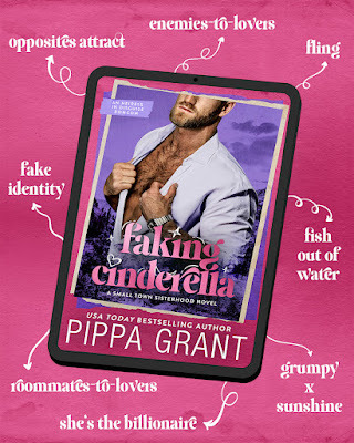 Faking Cinderella (Small Town Sisterhood #3) by Pippa Grant is a small-town contemporary opposites-attract rom-com told in first person dual POV. Although it’s book three of a series, it can be read as a standalone, but those who’ve read the previous books will have the fullest experience as they encounter familiar characters throughout the series.