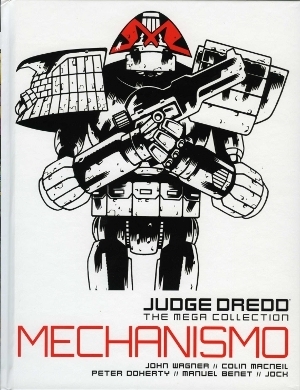 The main body of this book is taken up by Wagner's 'Mechanismo' storyline which, with 2000AD's signature mixture of brutality and dark humour, explores the idea that a machine shouldn't be able to sit in judgement over human beings. What I liked most about this was seeing Dredd's reaction to the harsh behaviour of the robot Judges who are, in fact, programmed to emulate his own personal style.