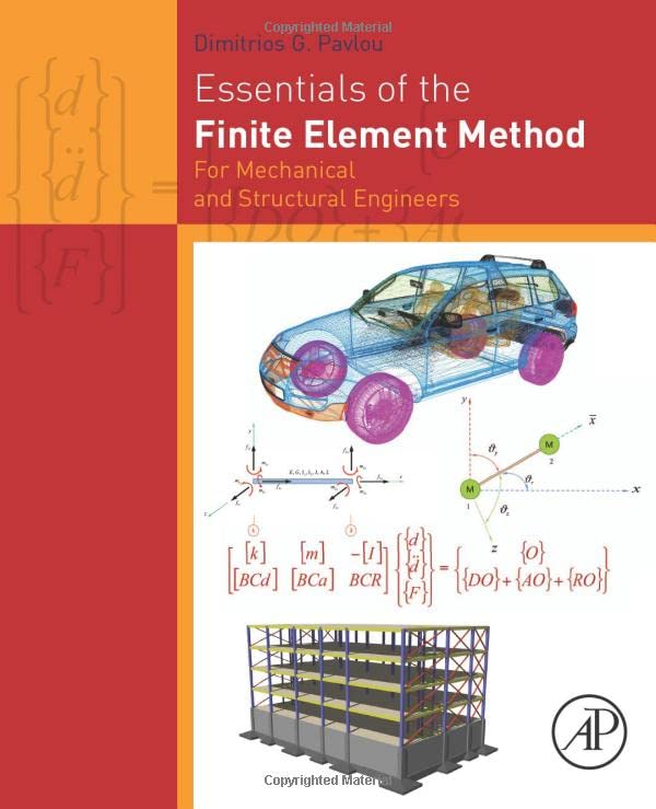 Fundamental coverage, analytic mathematics, and up-to-date software applications are hard to find in a single text on the finite element method (FEM). Dimitrios Pavlou’s Essentials of the Finite Element For Structural and Mechanical Engineers makes the search easier by providing a comprehensive but concise text for those new to FEM, or just in need of a refresher on the essentials. Essentials of the Finite Element Method explains the basics of FEM, then relates these basics to a number of practical engineering applications. Specific topics covered include linear spring elements, bar elements, trusses, beams and frames, heat transfer, and structural dynamics. Throughout the text, readers are shown step-by-step detailed analyses for finite element equations development. The text also demonstrates how FEM is programmed, with examples in MATLAB, CALFEM, and ANSYS allowing readers to learn how to develop their own computer code. Suitable for everyone from first-time BSc/MSc students to practicing mechanical/structural engineers, Essentials of the Finite Element Method presents a complete reference text for the modern engineer.