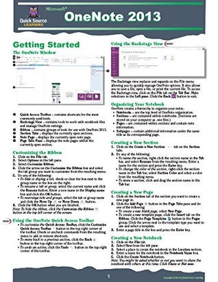 Do you need an easy-to-follow software reference right at your fingertips? Our 6 page, tri-fold guides are the answer. These quick reference guides include step by step instructions to help users to learn the software more quickly, as well as full color screen graphics to highlight important features. Quick Source reference guides also include the software programs NEW features and give you quick access to time saving shortcuts. The OneNote 2013 Quick Source guide is a clear and concise tool for learning the features in OneNote. Features contained in this guide include features such Using the Backstage View, Using the OneNote Quick Access Toolbar, Inserting a Graphic, Sharing a Notebook, Syncing Shared Notes with OneDrive, Using the OneNote Tool, Enabling Touch Mode, and much, much more! If you want a Quick Source Guide, but do not see the title you want, visit us at quicksourcelearning.com.