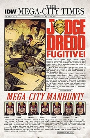 "Mega-City Manhunt, part 1"--Dredd has defeated the Dark Judges and broken out of Sector One... only to find himself a fugitive in Judge Cal's insane surveillance state, with only Anderson in his head helping him survive Cal's rabid manhunt...