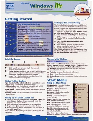 This 6 page, tri-fold, full color guide is an invaluable resource for anyone who uses Windows ME. It provides step-by-step instructions on how work with windows, the Taskbar, the Quick Launch Bar, the Active Desktop, and the Start Menu; open and use the Windows Explorer; add favorites; add and remove programs; create, search for, move, copy, rename, delete, restore, and send files or folders; customize by utilizing the Control Panel; connect, set up, browse, and search the internet; print; restore the system; shut down windows; and much more! An excellent instructional tool for the user new to Windows ME, it also serves as a handy reference tool for the more experienced user.