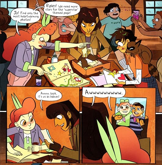 Aw, Mal and Molly are so darn cute. And Bear Woman is officially my favourite side character. There's a nice balance in this volume between the high stakes alt universe with dinosaurs action that Mal and Molly get wrapped up in and the rest of the gang failing miserably at getting 'normal' badges.