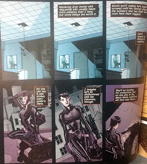 3) Not much Spandex I like superheros. Sue me. If you don't have much cape 'n tight action, my attention just dwindles down to almost nothing. Yeah, there are exceptions to that rule ( Saga, I'm looking at you.), but not many. This? This was more of a mafia story with a few Catwoman-y moments thrown in.