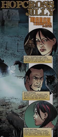 Adam's all-human teenaged daughter Jesse plays a significant role in Hopcross Jilly. Jesse has consistently been the only other recurring likeable female in the Mercy Thompson series. It makes it harder to see her challenges at school since she had become a recent transplant in order to live with her dad. It hasn't been easy on Jesse since werewolves have gone public and she's the alpha's daughter. Now the werewolves' discovery of the cache of human bones just brings more negative attention Jesse's way. But it's not the only thing Jesse attracts...