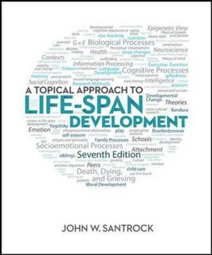 Title: A Topical Approach to Lifespan Development Author: John Santrock Edition: 7th edition ISBN-13: 9781259060854 Format: Soft Cover / Paperback BRAND NEW, Color Printed in Acid Free Paper. Written in English. Different Book Cover Design and Different ISBN from US edition.