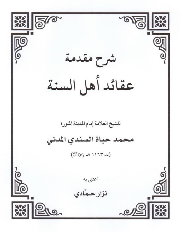 بسم الله الرحمن الرحيم مما ورد في المقدمة التحقيق: ولقد استمر اتفاق جمهور أئمة المسلمين المعتبَرين على اعتماد المنهج الأشعري في العقيدة جيلا بعد جيل وقرنا بعد قرن، من أقصى غرب بلادهم إلى مشرقها، وبين أيدينا الآن هذه الرسالة المصنَّفة في القرن الثاني عشر للهجرة تؤكد ذلك، وهي للشيخ العلامة محمد حياة السِّندي الأصل الذي صنفها في المدينة النبوية المشرفة يشرح فيها متناً لعالِـمٍ سُنِّيٍّ أصلُه من بلاد ما وراء النهرين وهو الشيخ «خوجه ميرزا» الذي كان بدوره قد اختصر فيها العقيدة المعروفة بـ«أم البراهين» للإمام الشريف محمد بن يوسف السنوسي الحسني التلمساني، وهذه عينة تصور بجلاء اتفاق هؤلاء العلماء على نفس القواعد الاعتقادية على الرغم من تباعد أقطارهم الجغرافية. صاحب هذا الشرح هو أحد العلماء الأخيار الأبرار، فهو الشيخ العلامة المحدِّث الفهامة، حاملُ لواء السُّنة بمدينة سَيِّدِ الإنس والجنة: محمد حياة بن إبراهيم السِّندي. قال في شأنه تلميذُه العلامةُ أبو الحسن السندي الصغير: «هو عمدة الأعلام المحدِّثين، وبقية النقاد والمسندين، عالِـم المدينة في عصره، الممتاز بالذبِّ عن الخبر ونَصْرِه، حميد الذات وفريد الصفات، نعمة الله المهداة». وأثنى عليه القنوجي قائلا: «كان من العلماء الربانيين، وعظماء المحدِّثين، قَرَن العلمَ بالعمل، وزان الحسن بالحلل، شدّ حزامه على درس الحديث النبوي، وأفنى عمره في خدمة الكلام المصطفوي، وكان يعظ الناس قبل صلاة الصبح بالمسجد الشريف، وانتفع به خلق كثير من العرب والعجم، وأقبل عليه أهل الحرمين ومصر والشام والروم والهند بالاعتقاد والانقياد».