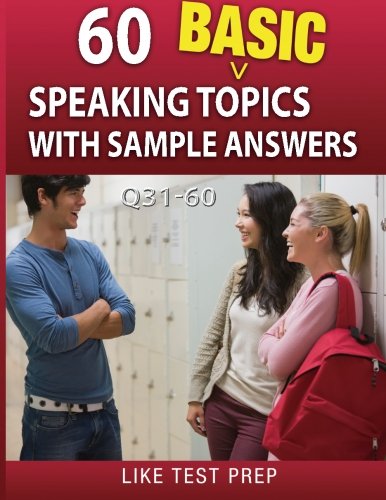 60 Basic Speaking Topics This Book Contains -30 Speaking Topics -30 Sample Answers -120 Practice Questions -180 Useful Expressions Great for -Secondary School Students -Basic Level Writing Students -ESL Students *60 Basic Writing Topics & 60 Basic Speaking Topics share the same topics. Visit www.liketestprep.com for free downloads!