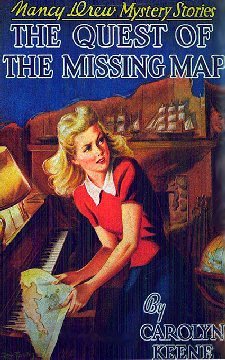 AUTHOR Keene, Carolyn TITLE The Quest of the Missing Map DATE READ 02/13/21 RATING 4/B FIRST SENTENCE Golden hair flying in the wind, Nancy Drew ran up the front porch steps and let herself into the front door of her home. GENRE/ PUB DATE/FORMAT/LENGTH YA Mystery/ 1942/ hardback/213 pgs SERIES/STAND-ALONE #19 CHALLENGE Good Reads 2020 Reading Goal 19/120 GROUP READ ND TIME/PLACE 1940's/Ohio CHARACTERS Nancy Drew/girl detective; her friends Bess & George COMMENTS A better than average entry into the Nancy Drew world. This was a little more complex (if that word can be applied to Nancy Drew) in that there seemed to be more than usual going on: a missing half of a treasure map; a lost twin brother; a cruise to a treasure island; and in general a few different character connections adding to the storyline. When Ellen visits Hanna Gruen, the Drew's Housekeeper she is introduced as the daughter of the family she worked for prior to the Drews. Ellen has been offered a job teaching piano to a young girl and was asking Hanna's advice…Nancy looks into it for her and becomes involved in not only background checking for Ellen's employment but going on a treasure hunt.